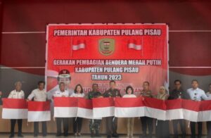 Pulang Pisau – Bupati Pulang Pisau Pudjirustaty Narang mengajak masyarakat Kabupaten Pulang Pisau untuk mengibarkan bendera merah putih selama bulan Agustus. Ajakan itu disampaikan Bupati saat pencanangan gerakan pembagian bendera merah putih se- Kalimantan Tengah di Aula Dinas Kesehatan, Rabu 26 Juli 2023.